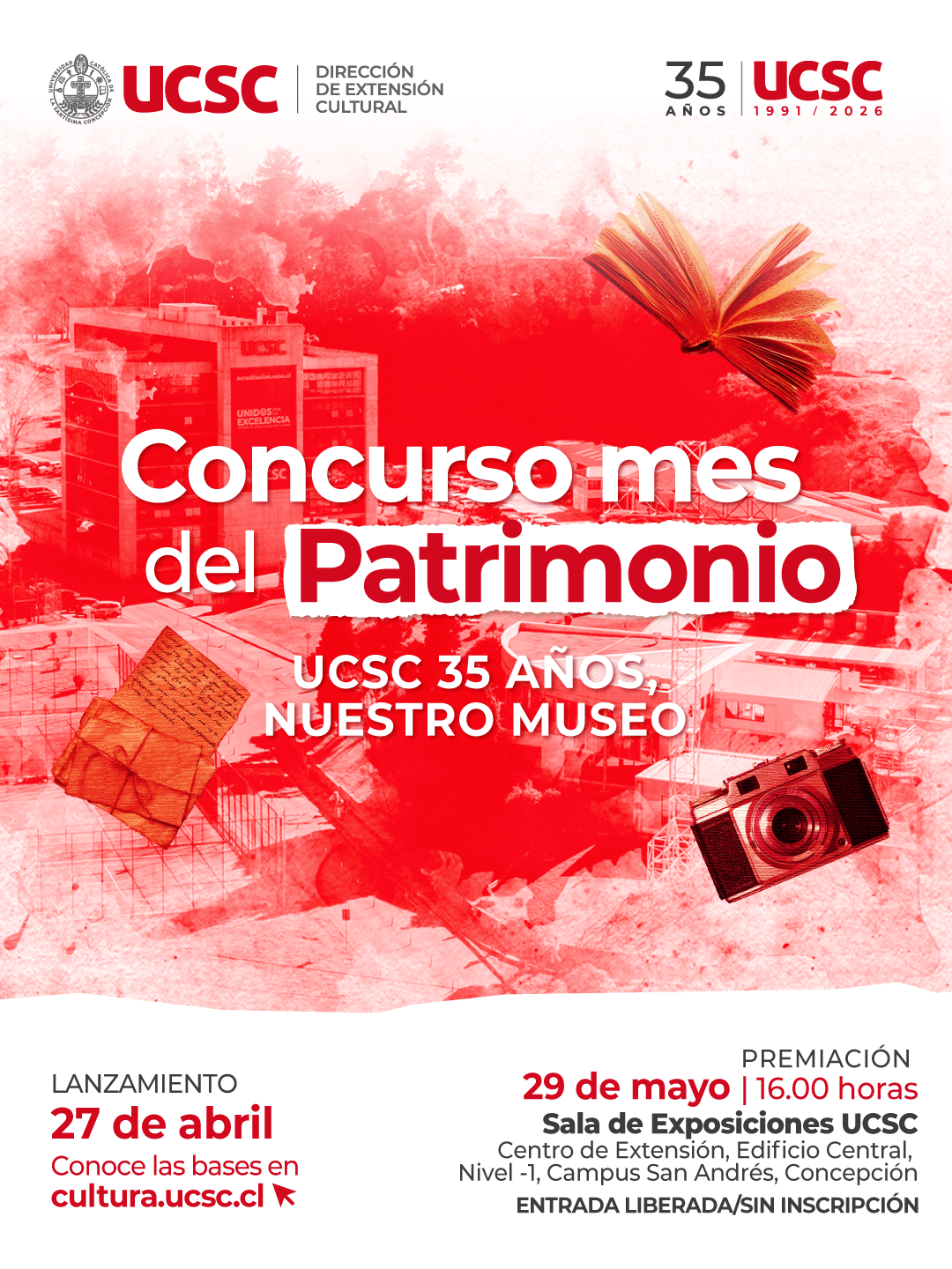 En el marco del Mes de los Patrimonios y los 35 años de la Universidad Católica de la Santísima Concepción, la Dirección de Extensión Cultural y Ediciones UCSC invita a la comunidad universitaria a participar en el concurso “UCSC 35 años: Nuestro Museo”.